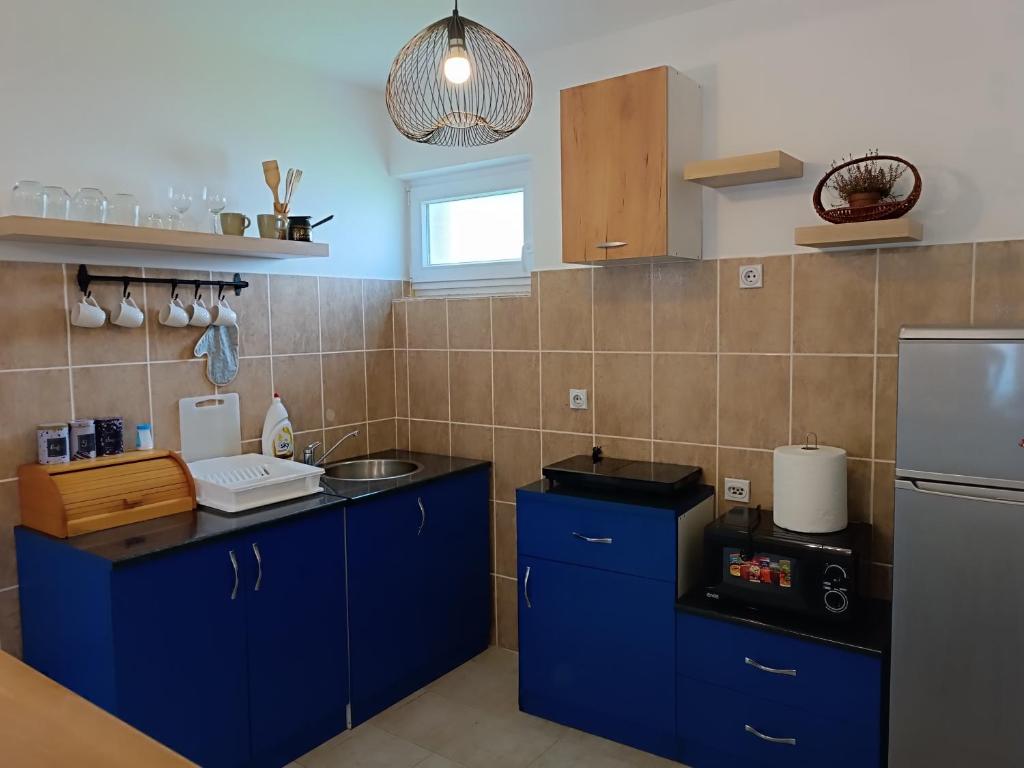 frižider, mikrotalasna rerna, kuhinja, električno kuvalo, posuđe, ploča za kuvanje, sto za ručavanje, dečja visoka stolica, čaše za vino